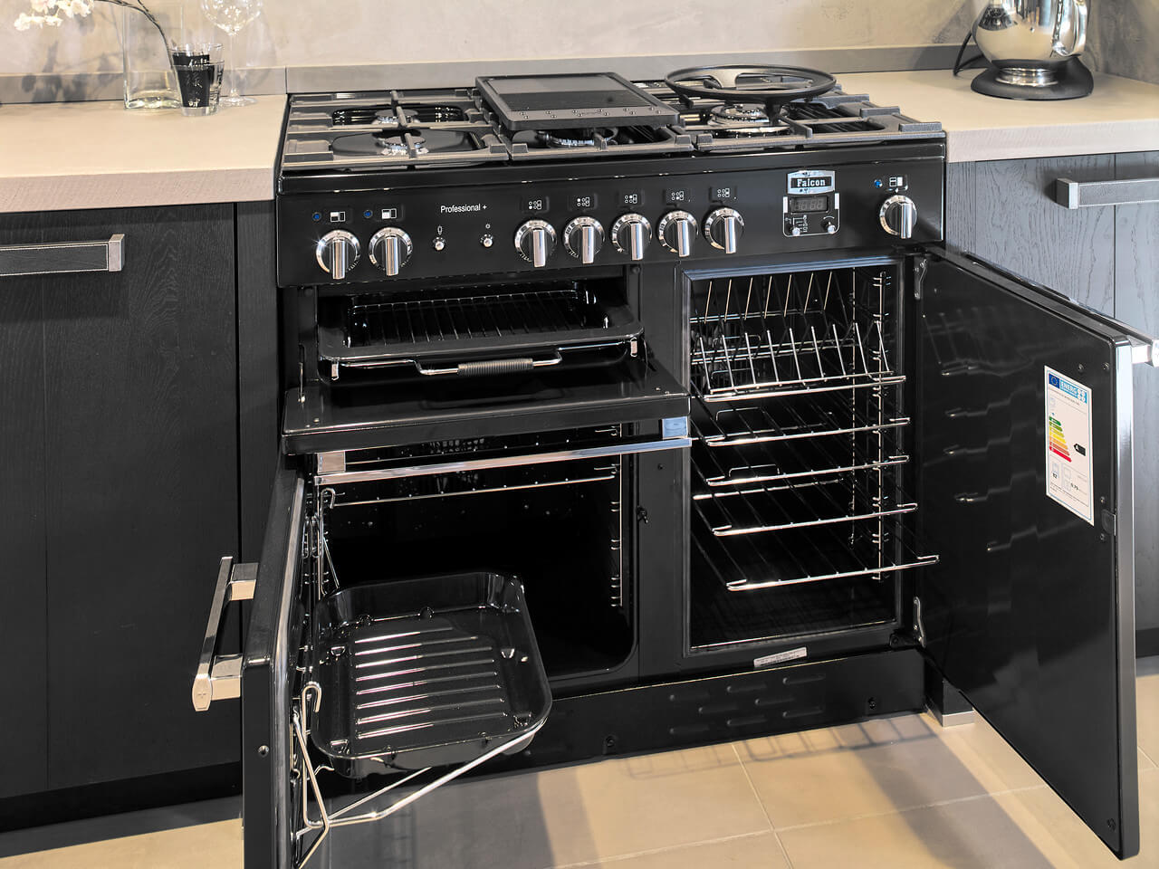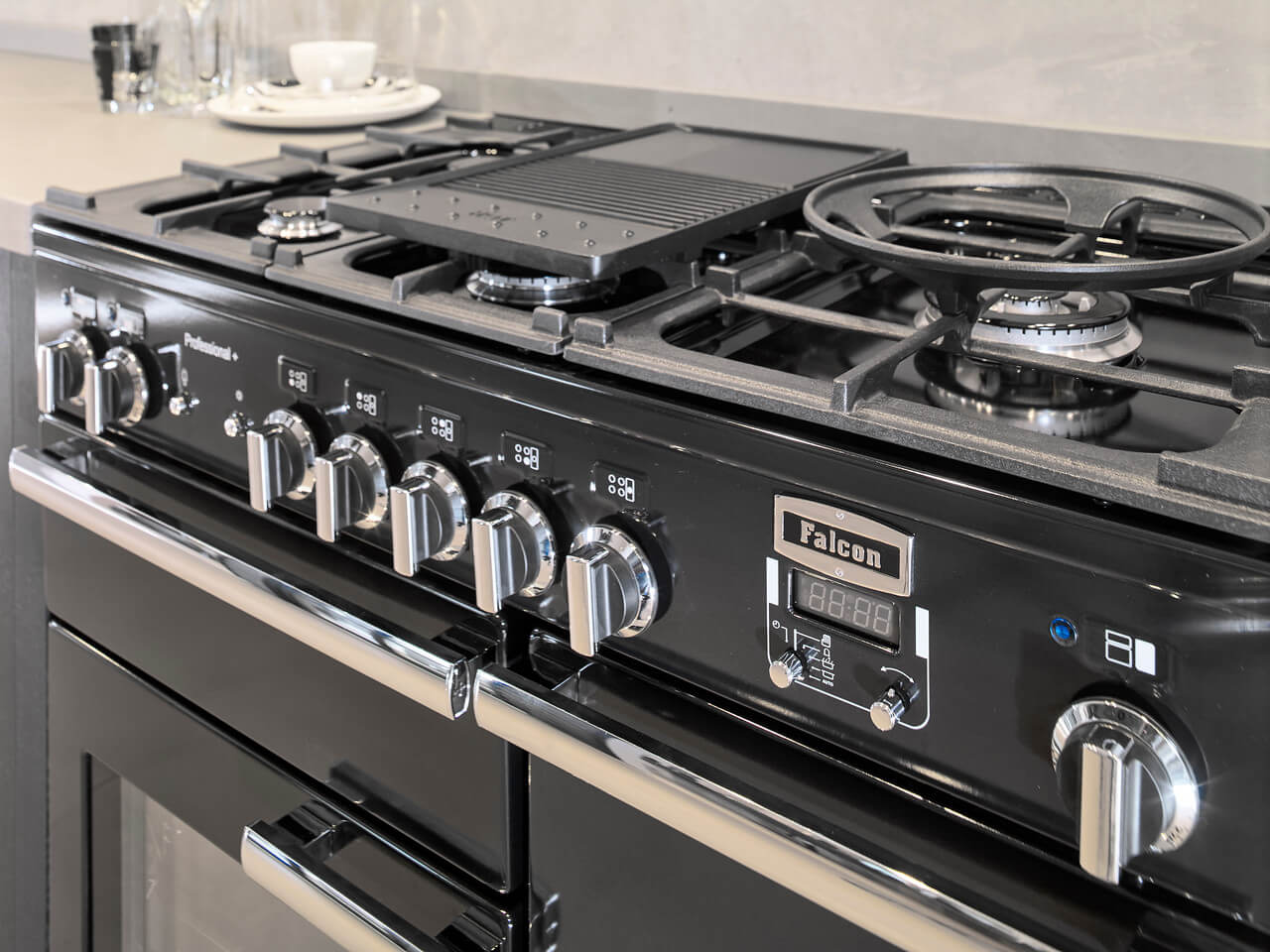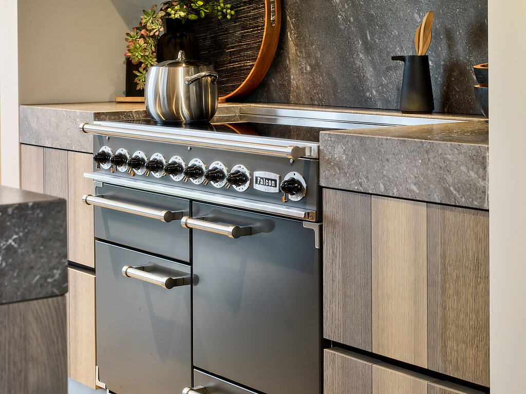 Verschillende modellen van Falcon fornuizen staan opgesteld in onze keukenshowroom. Wilt u persoonlijk advies? Maak dan een afspraak met een van onze keukenadviseurs. Zij helpen u graag bij het kiezen van het fornuis dat bij u past.