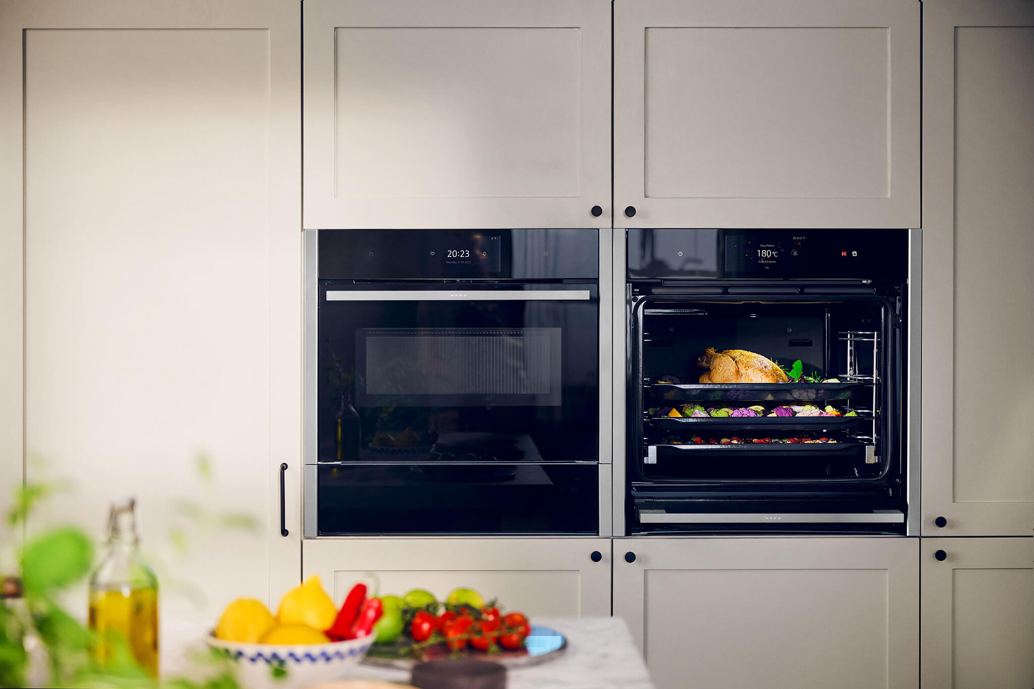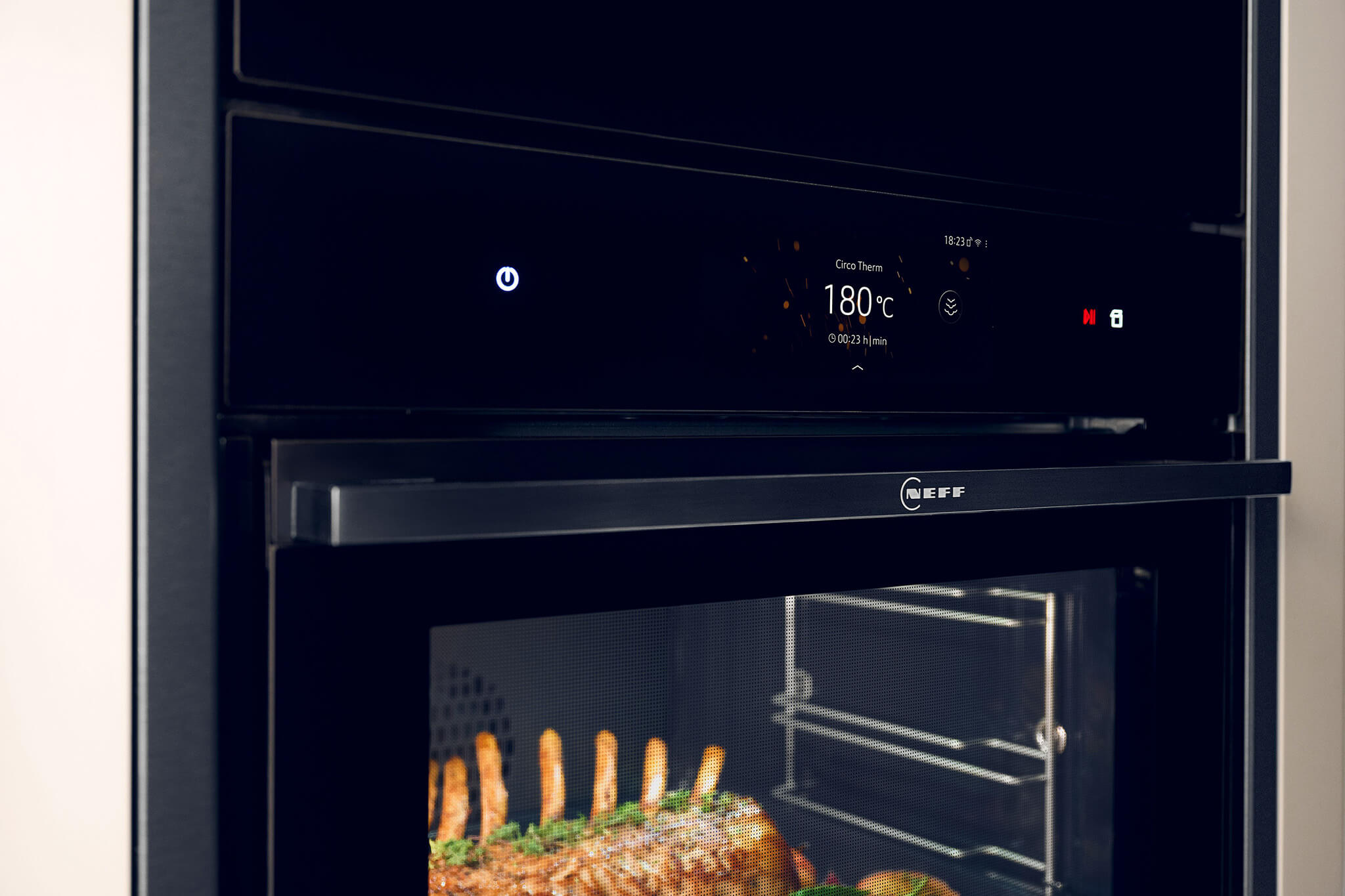 Kookt u graag voor vrienden of familie? Dan herkent u het vast: u wilt meerdere gerechten tegelijk bereiden, maar uw oven werkt daar niet altijd aan mee. Geuren vermengen zich, smaken lopen door elkaar; zonde van uw gerechten. Met Circo Therm®, de slimme heteluchtfunctie van NEFF, is dat verleden tijd. Hiermee bakt u verschillende gerechten op drie niveaus tegelijk, zónder smaak- of geurvermenging.