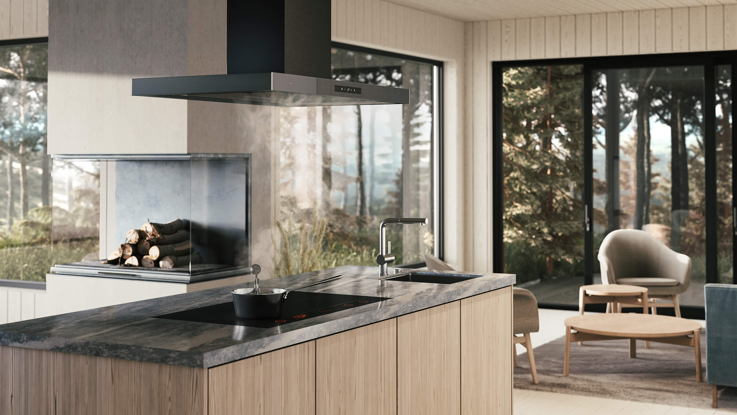 - Eiland- en wandafzuigkappen: krachtige afzuiging in stijlvol Pearl Grey design.