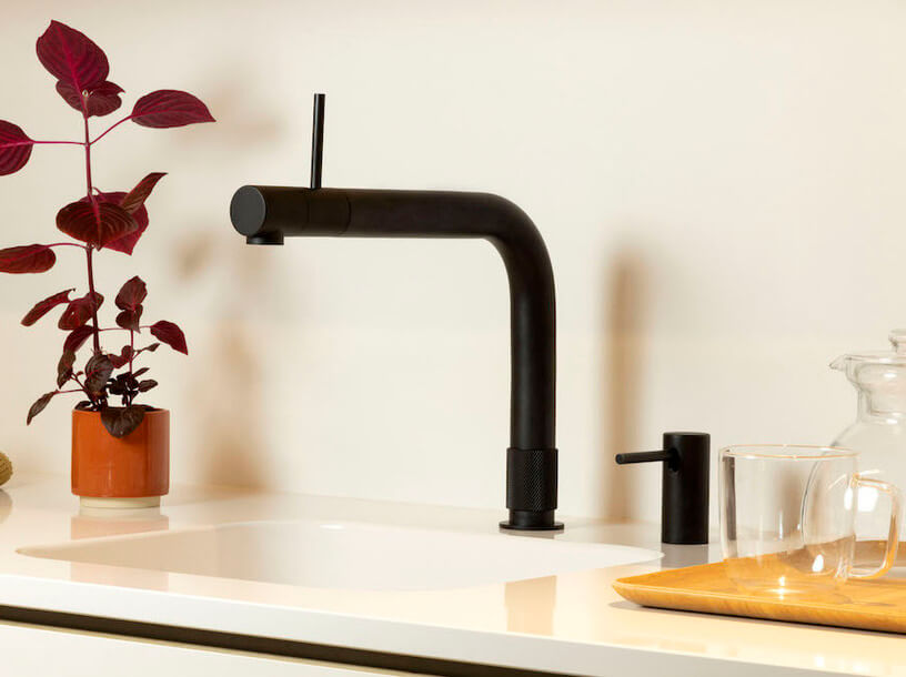 Het loepzuivere design van de Front springt meteen in het oog. Een strakke buisvorm. Clean, minimalistisch en tegelijkertijd uitgesproken. Anders dan bij andere Quooker-kranen, zit de hendel voor warm en koud water aan de voorkant, dicht bij de uitloop. Wel zo handig.