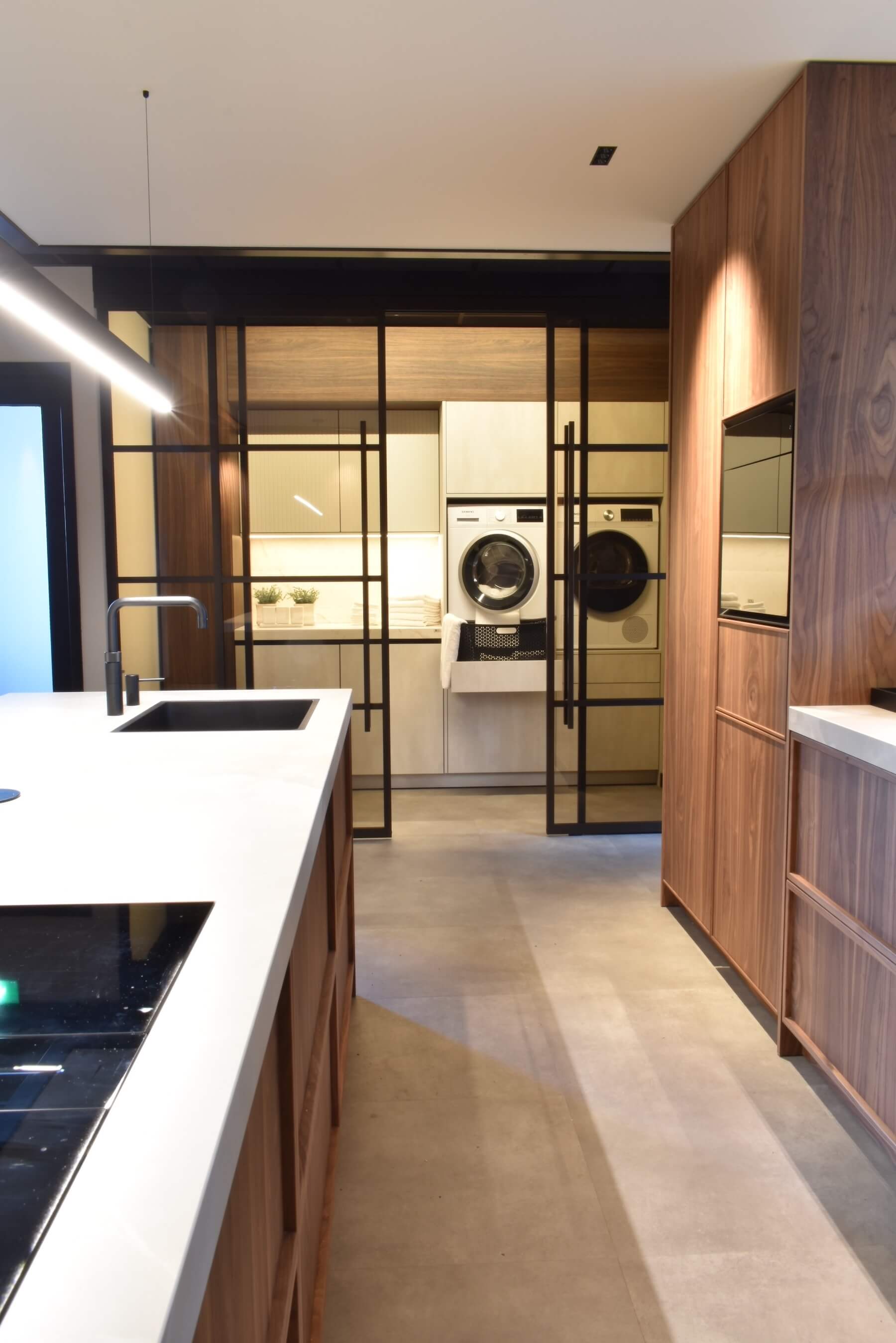 - Ruimte voor wasmachine en droger op werkhoogte.