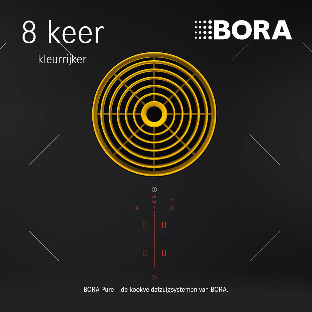 De BORA Pure collectie bestaat uit verschillende modellen. Of u nu kiest voor de Pure, M Pure, S Pure of X Pure: elk model heeft een strak vlakinbouwontwerp en hoogwaardig glaskeramiek. De keuze tussen mat of glanzend glas laat u afstemmen op uw stijl. Het matte oppervlak oogt stijlvol en maakt vingerafdrukken en krassen minder zichtbaar. Zo blijft uw keuken netjes, zonder extra moeite. Onze adviseurs helpen u in onze showroom graag kiezen welke bij u past.
