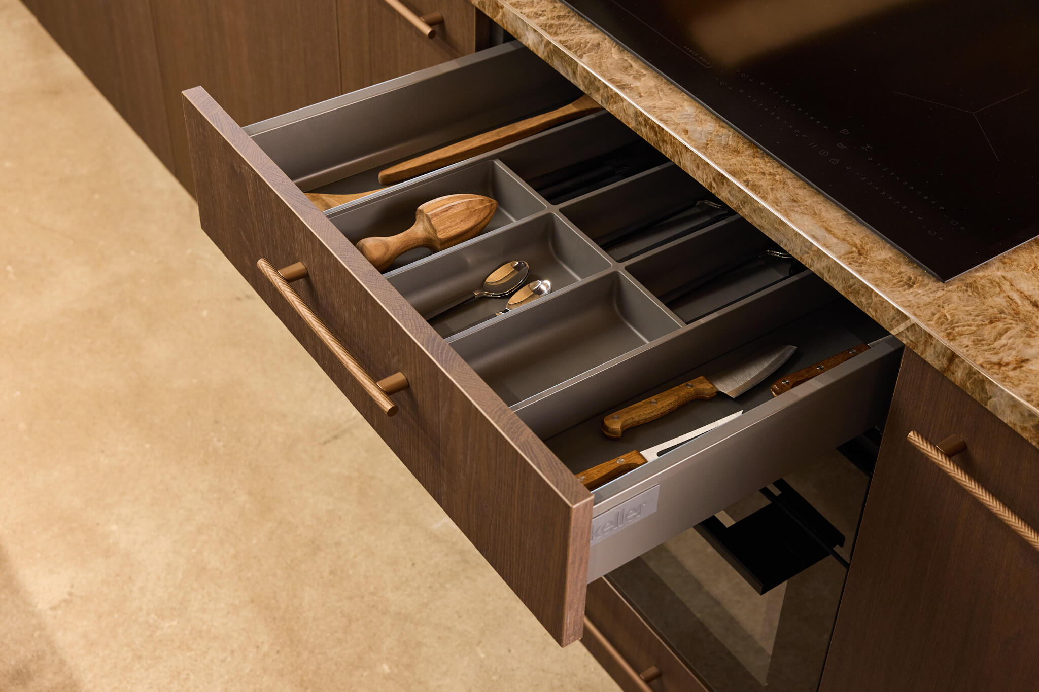Tactiele luxe: dit betekent dat u de materialen niet alleen ziet, maar ook echt voelt. Dit keukenmodel van Keller Keukens nodigt uit tot aanraken door het gebruik van rijke texturen. Deze nieuwe stijl brengt een unieke sfeer en exclusieve afwerking naar uw keuken.