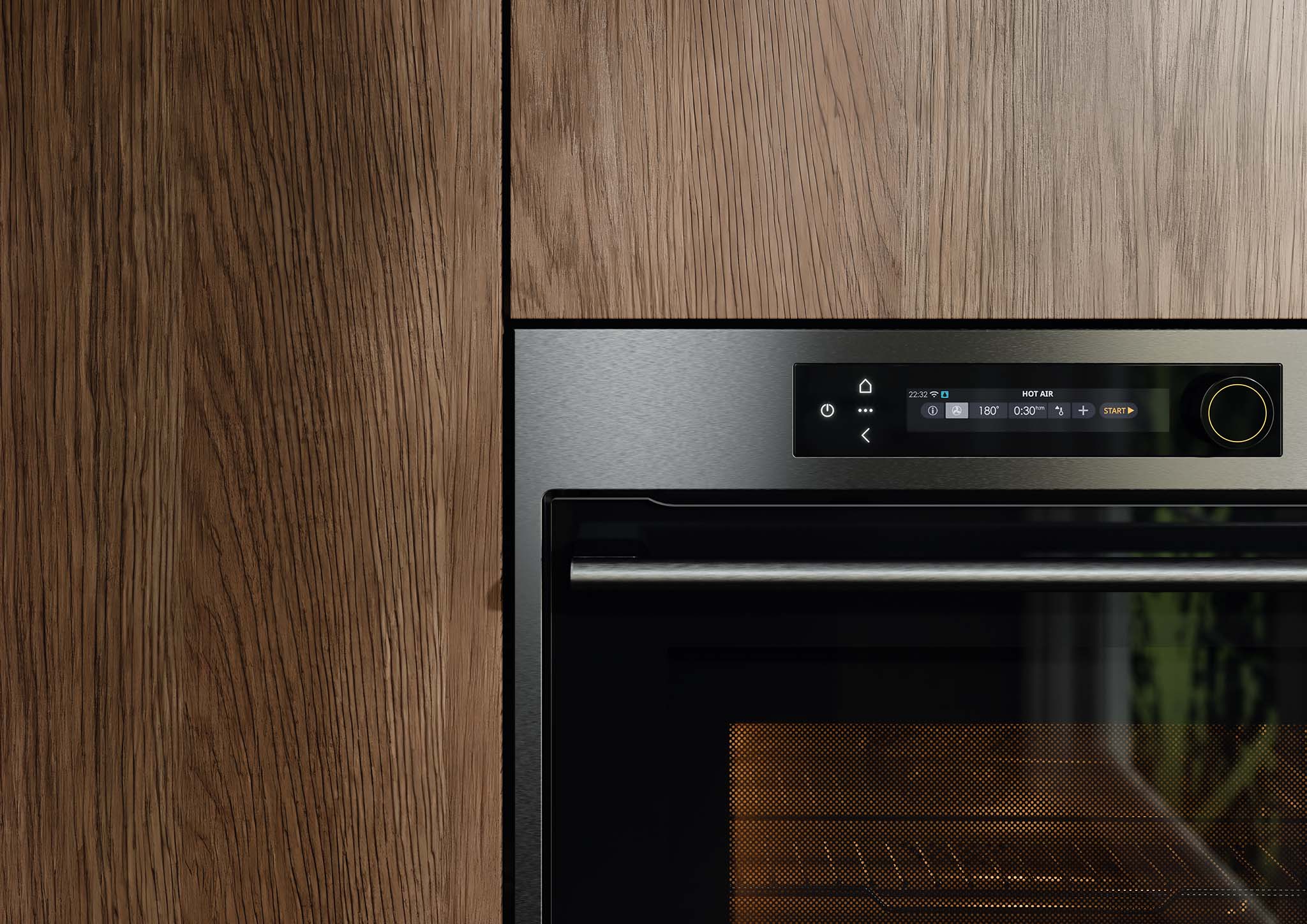 Ondanks de geavanceerde technologie is de oven makkelijk te bedienen. Met de draaiknop kiest u heel precies het juiste programma, en via het touchscreen start u uw favoriete instellingen al in drie klikken. Wilt u het nog makkelijker? Met de ConnectLife-app bedient en checkt u de oven gewoon via uw telefoon.