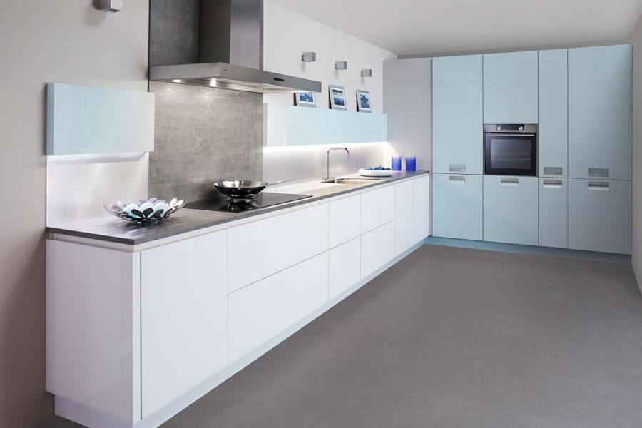 Afhankelijk van de ramen en deuren, begint of eindigt een hoekkeuken altijd met een hoge kast voor de koelkast. Naast deze kast is het mogelijk om nog een hoge kast te plaatsen voor bijvoorbeeld een combi-oven of apothekerskast.