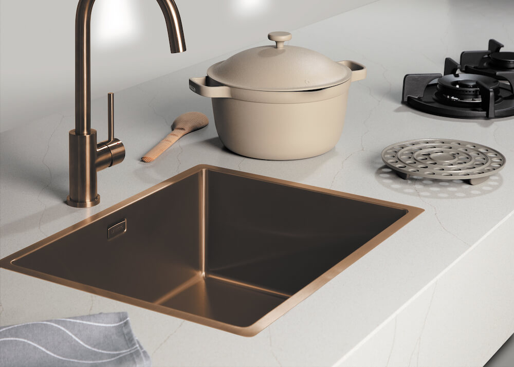 - Aluminium en rvs: bijvoorbeeld bij de apparaten en grepen, waardoor de keuken een eigentijdse look krijgt.