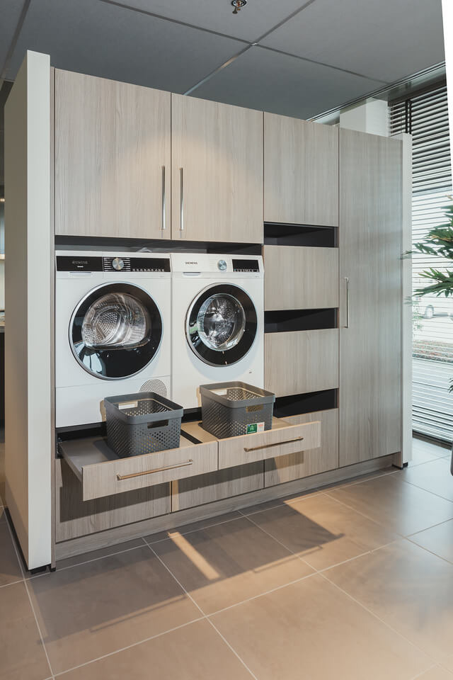 Bij Tieleman Keukens maken we ook uw bijkeuken helemaal op maat. Wilt u een ruimte die naadloos aansluit op uw keuken? Denk aan een kastenwand met een geheime deur die leidt naar een bijkeuken in exact dezelfde stijl. Of kiest u juist voor een bijkeuken met een eigen uitstraling, functioneel en praktisch ingericht als washok, voorraadruimte of opbergplek. Wat uw wensen ook zijn, wij zorgen voor een doordacht ontwerp met slimme oplossingen die uw wooncomfort vergroten.