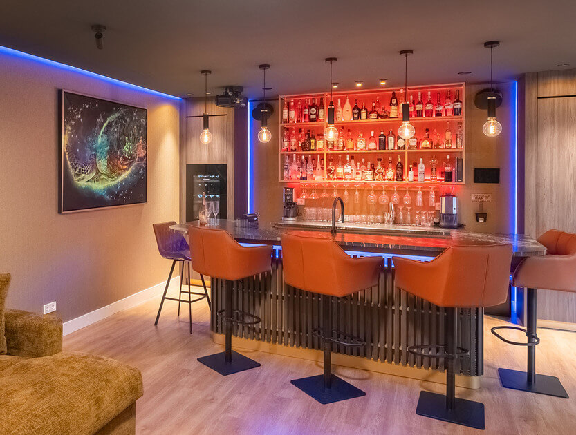 Deze exclusieve maatwerk bar is ontworpen in het model Mereno Milano. De combinatie van een royaal zitgedeelte, geïntegreerde spoelunit en een opvallend verlichte achterwand is deze bar ingericht om te genieten. Ideaal om te ontspannen, samen te komen of een drankje te drinken.