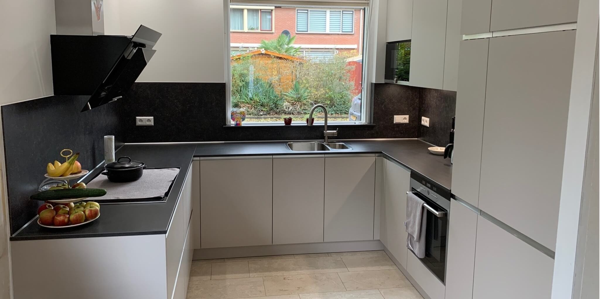 Onlangs hebben we weer een mooie U-keuken mogen plaatsen bij klanten in Puttershoek. Deze keuken van het merk Schüller is uitgevoerd in de kleur zandgrijs. Een greeploze keuken die van alle gemakken voorzien is en voldoende opbergruimte heeft.