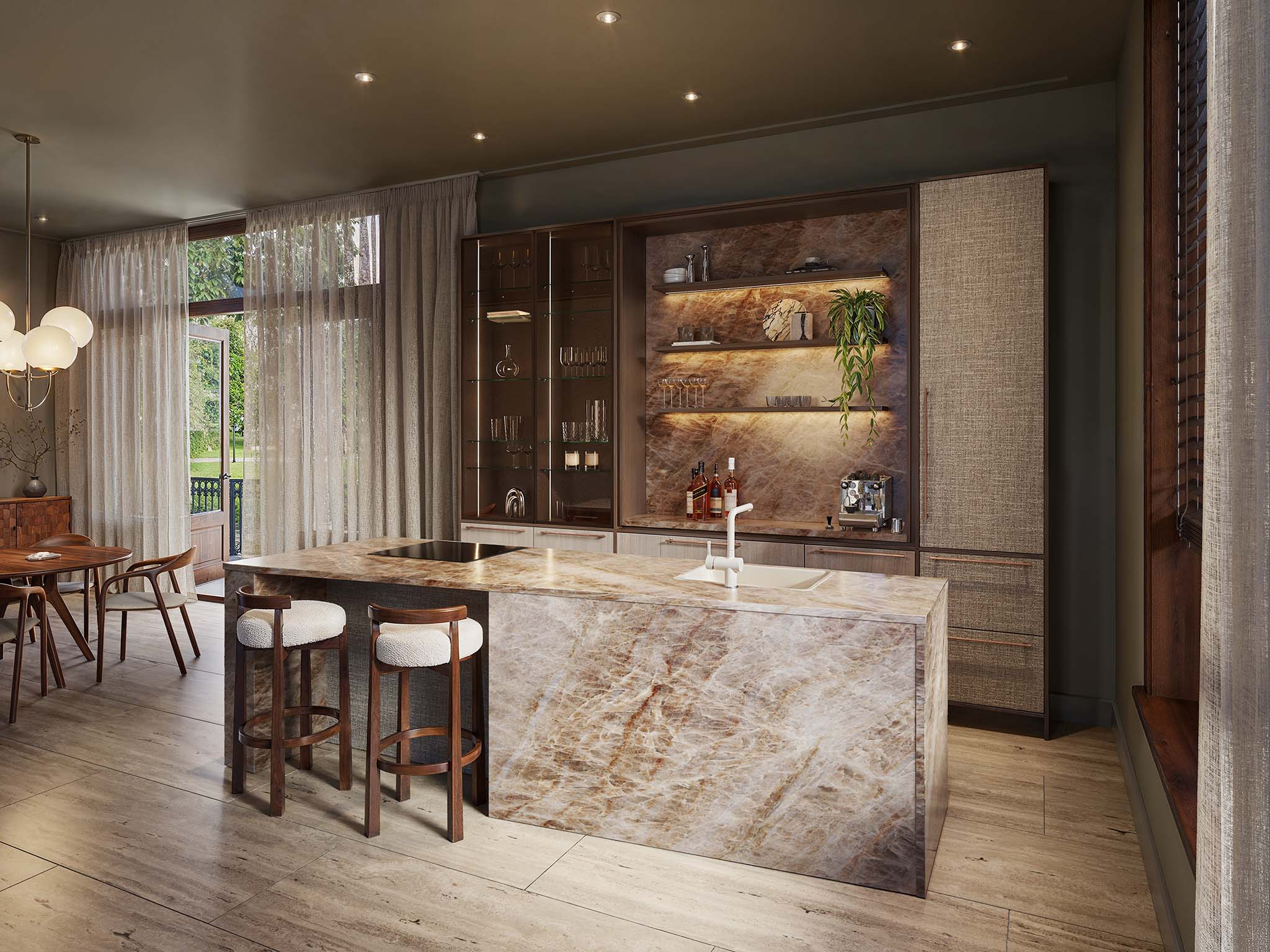 Rechte lijnen maken plaats voor zachtere vormen. Afgeronde hoeken zien we steeds vaker terug in het keukenontwerp. Denk aan een rond kookeiland, een afgeronde kastenwand of zelfs een afgeronde koffienis. Deze vormen maken de ruimte toegankelijk en speels. En ze zijn niet alleen mooi, maar ook handig doordat ze geen scherpe hoeken hebben.