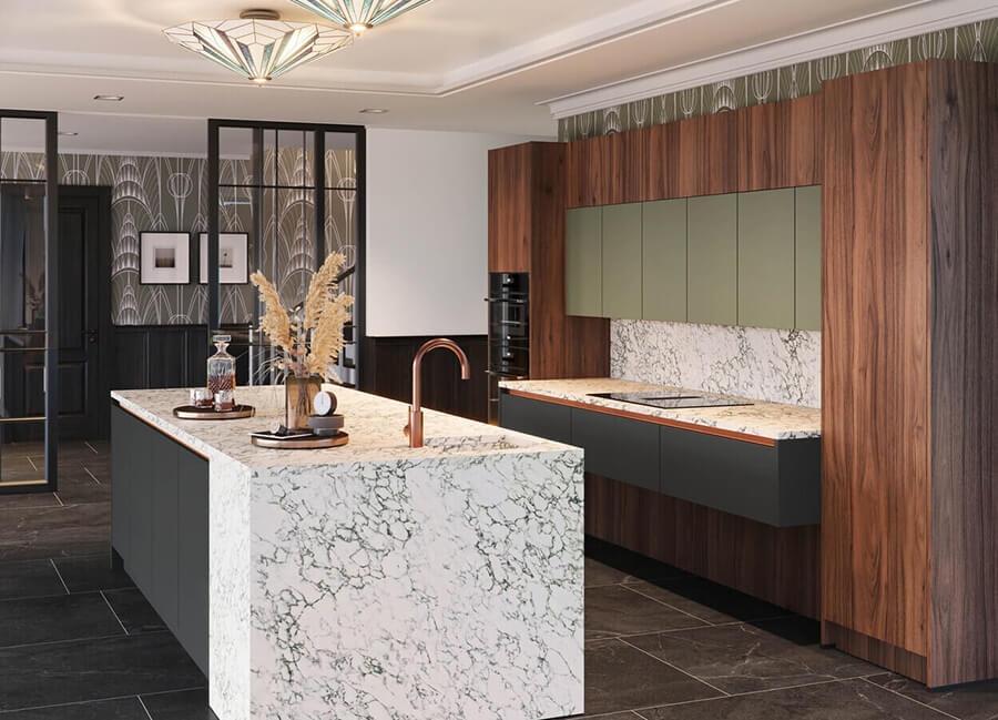 Marmer is een materiaal dat bijzonder goed met andere materialen en afwerkingen gecombineerd kan worden. Denk hierbij bijvoorbeeld aan hout, hoogglans of mat. Daarnaast is marmer goed te combineren met zowel een landelijke als industriële woonstijl. Door materialen te combineren komt het unieke en chique marmerpatroon nog beter tot zijn recht in uw keuken.