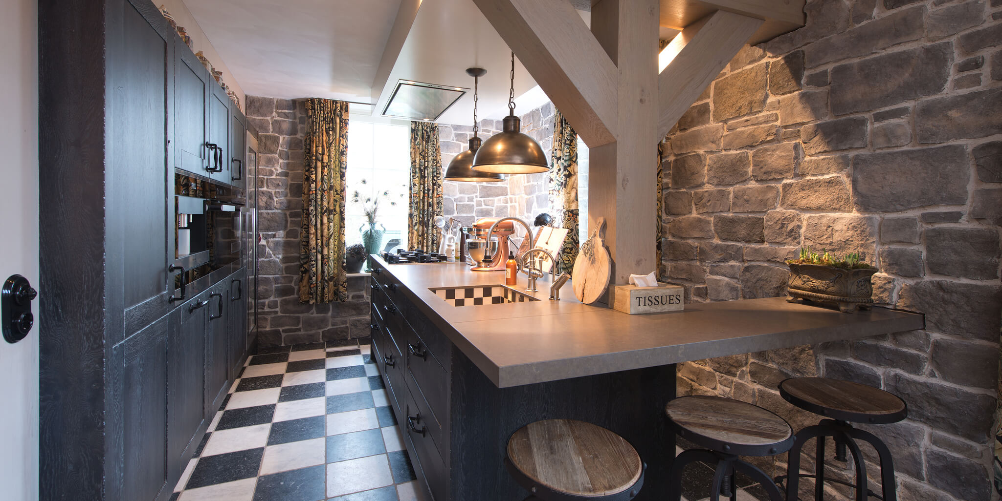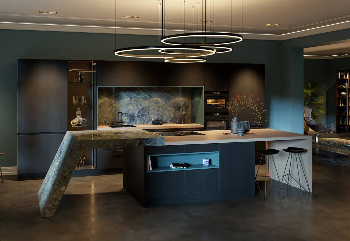 - Wilt u een bar in uw zwarte houten keuken en zo ja, waar wilt u die dan plaatsen?